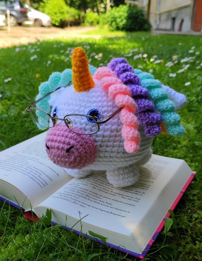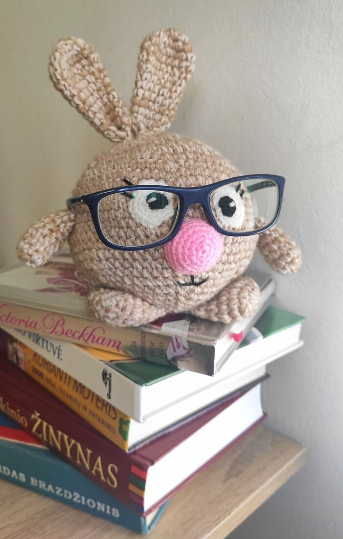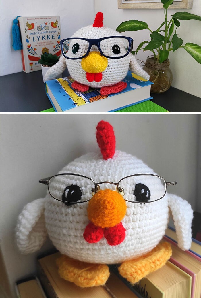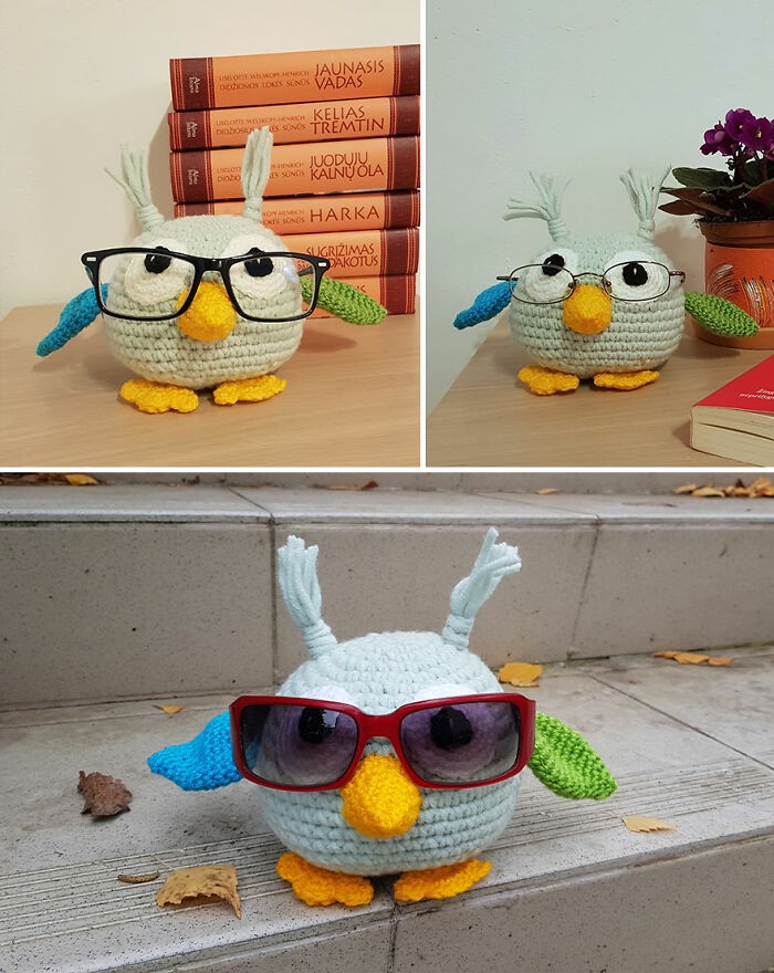 Violeta Vasilevičiūtė-Pocienė naprawdę lubi szydełkować, a najczęściej szydełkuje zabawki. Zabawki są duże i małe, kolorowe, proste i zakrzywione. „Czasami mam pomysł, aby zrobić na szydełku coś oryginalnego, użytecznego we wnętrzu i wygodnego.” – opowiada artystka. „Dlatego tym razem chcę zaprezentować wam moje ręcznie robione uchwyty na okulary. Daję je znajomym, którzy noszą okulary. To wygodna rzecz, dzięki czemu nie zgubisz ich gdzieś w domu. A jeśli okulary nie są umieszczone na uchwycie, jest to po prostu piękna dekoracja wnętrza.” – dodaje Violeta.