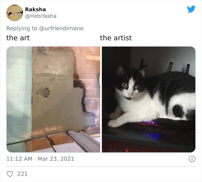 Zdjęcia i wpisy pochodzą z wątku na Twitterze, w którym użytkownicy dzielili się zdjęciami przyłapanych na przewinieniach pupili.