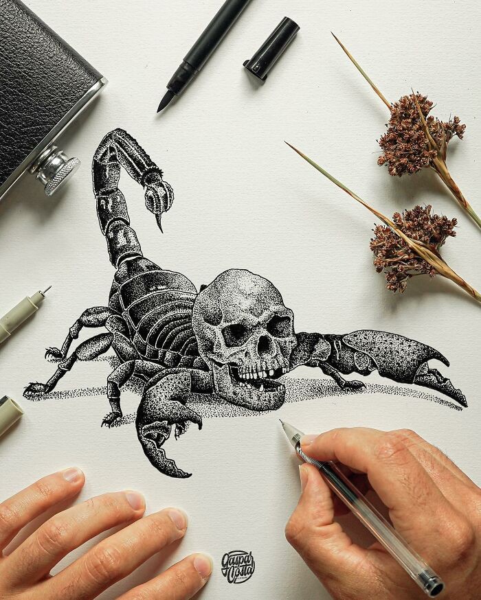 Gaspar Costa to portugalski ilustrator z zamiłowaniem do szczegółowych, ręcznie rysowanych dzieł sztuki, które są ponadczasowe i pełne życia. Zainspirowany starymi rycinami, naturą i starodawnym wzornictwem, jego ilustracje często przedstawiają zwierzęta, czaszki, rośliny i przedmioty, wszystkie pełne misternych linii.