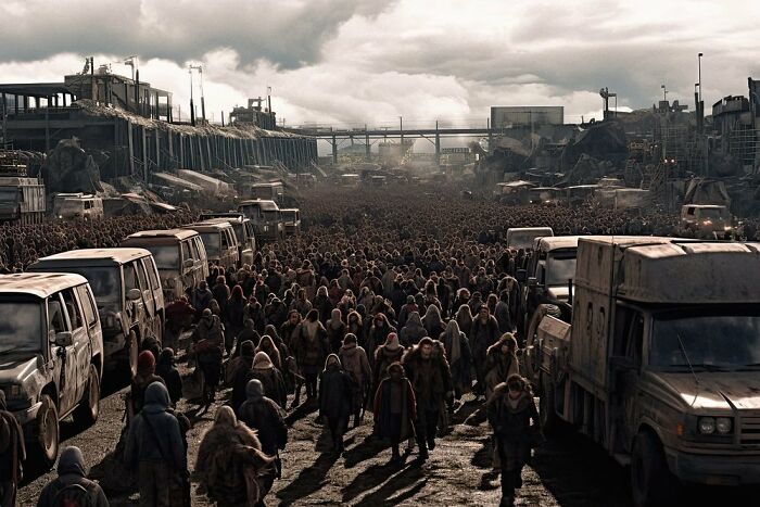 22 prowokujące do myślenia obrazy AI Alkana Avcıoğlu ukazujące chaos współczesnego życia