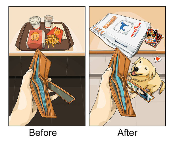 Autor ilustracji, tajwański właściciel psów i kotów podpisujący się jako John, chciał zwrócić uwagę na to, by przed podjęciem decyzji o przygarnięciu zwierzęcia dobrze rozważyć, czy sprostamy opiece nad nim. W serii rysunków ukazał kontrast między codziennością przed i po — bo opieka nad istotą żywą to poważna odpowiedzialność.