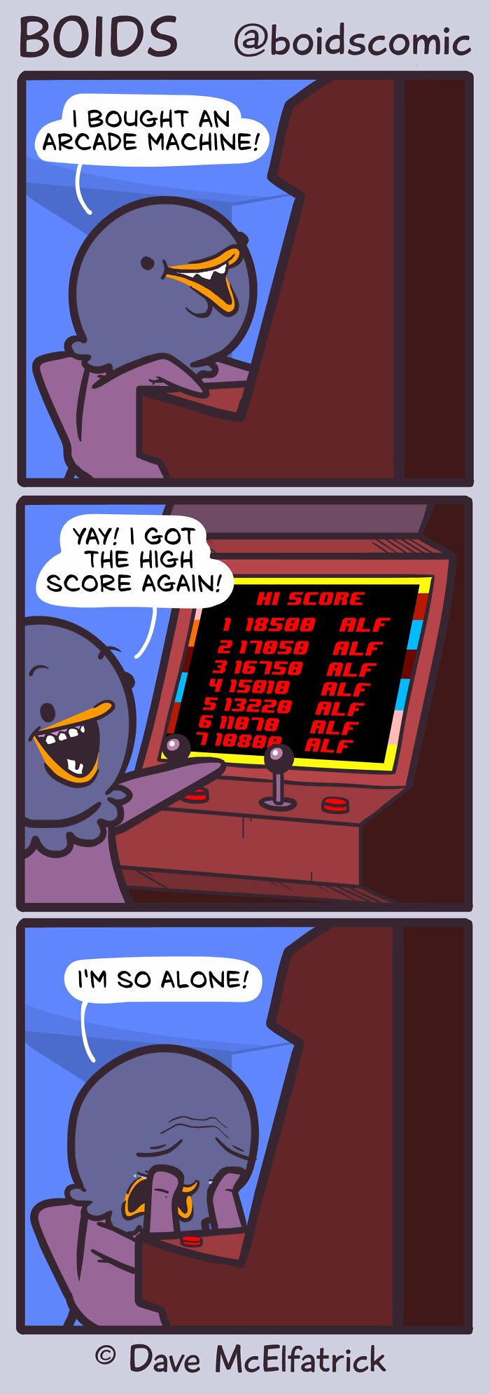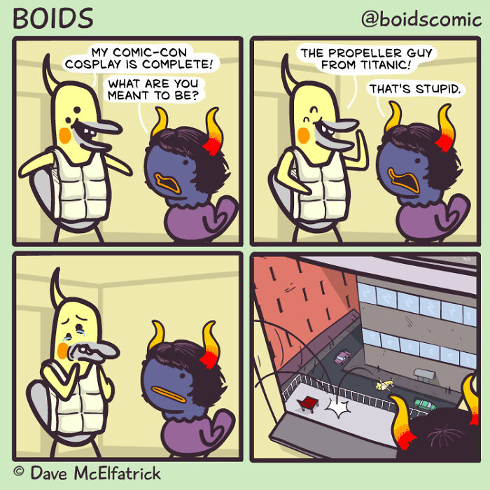 Dave McElfatrick to rysownik z hrabstwa Derry w Irlandii, którego prace stały się rozpoznawalne dzięki prostemu stylowi i ciętemu humorowi. Jest jednym ze współtwórców longrunningowego webcomicu Cyanide & Happiness oraz autorem serii Boids, w której krótkie, jednoobrazkowe żarty łączą mroczne myśli, absurd życia społecznego i komentarz popkulturowy w minimalistycznej formie.