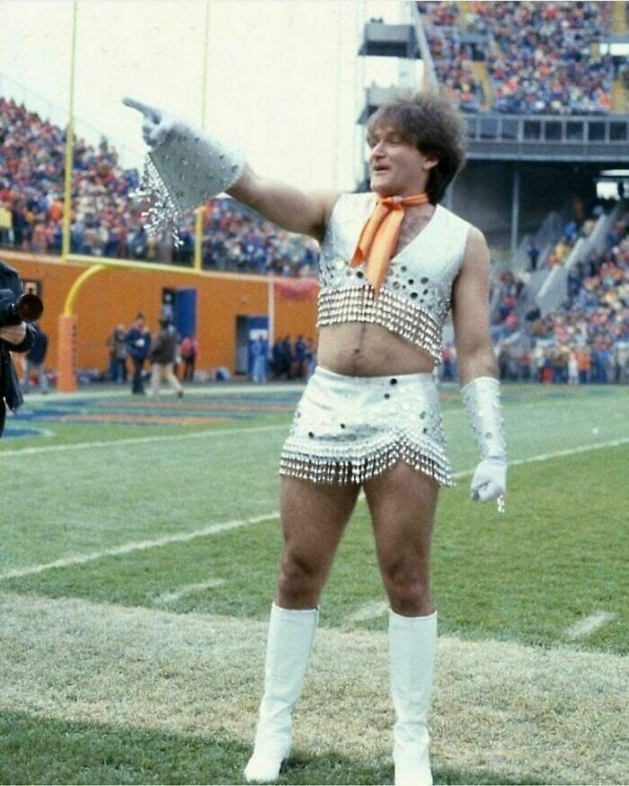 11 listopada 1979 r. Robin Williams wystąpił na meczu na stadionie Mile High przed ponad 70 000 widzów, przebrany za postać Morka z popularnego serialu. To jedno z zabawniejszych i pamiętnych zdjęć z młodzieńczych występów komika — a jednocześnie ciekawostka o jego poczuciu humoru i charyzmie.