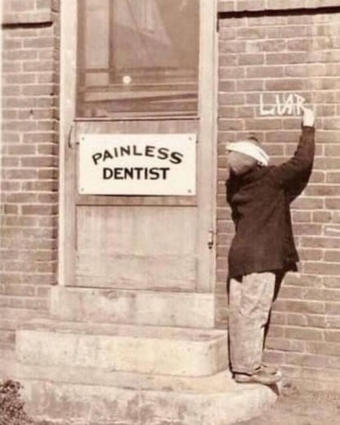 Zły mały pacjent po wizycie u dentysty, lata 20. XX wieku