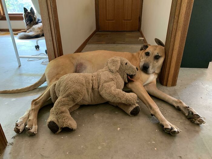 Zabawka, która jest zdecydowanie za duża — a i tak to jej ulubieniec