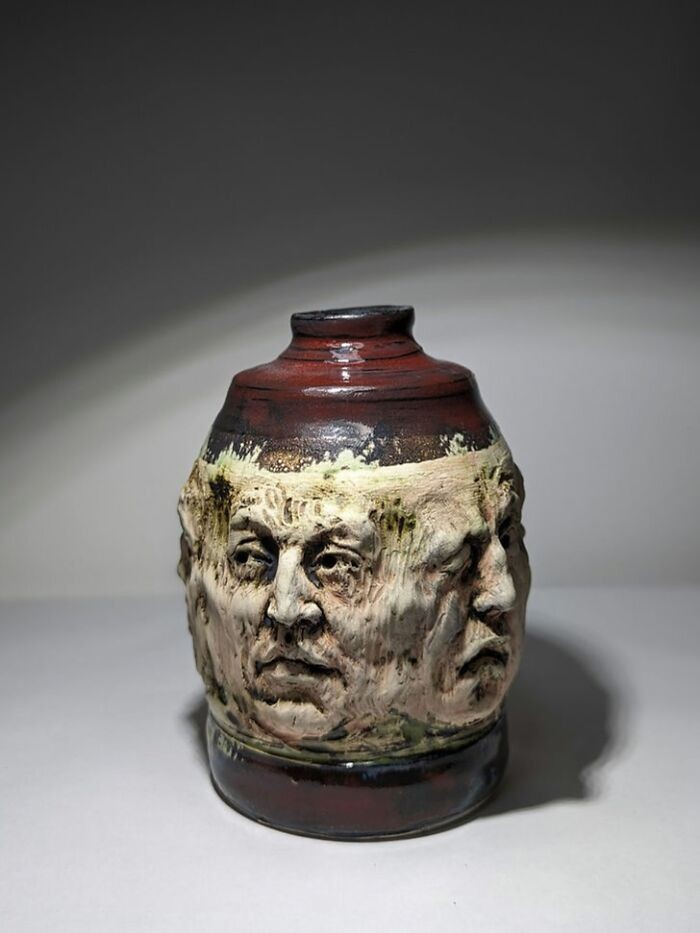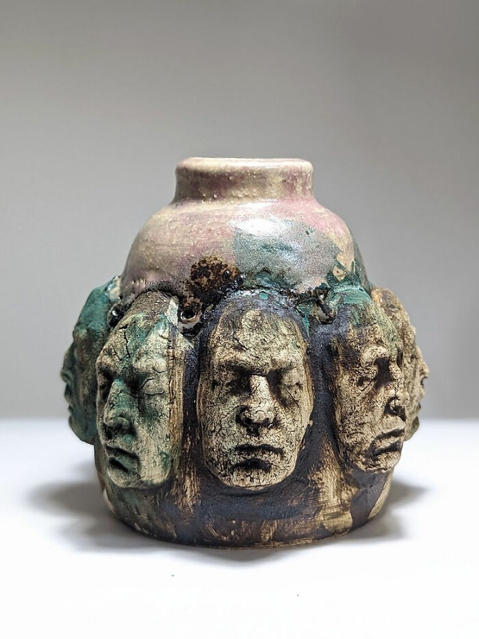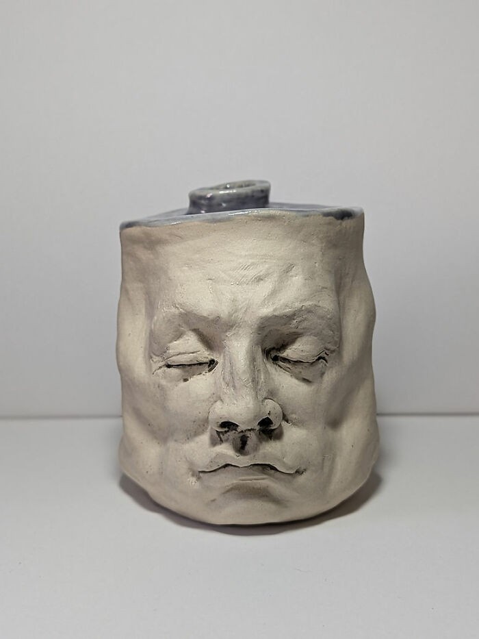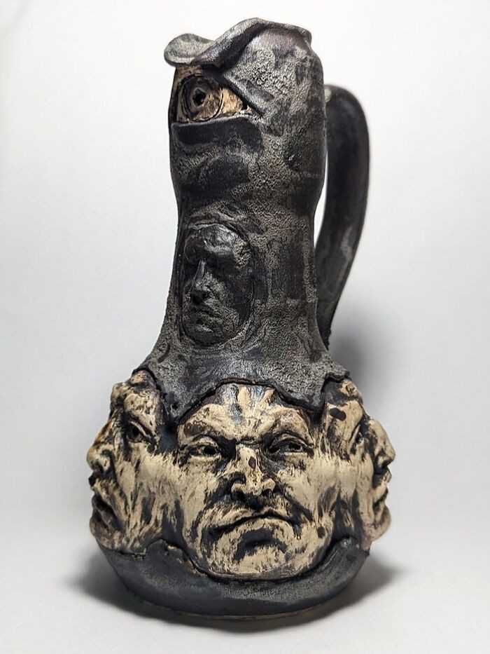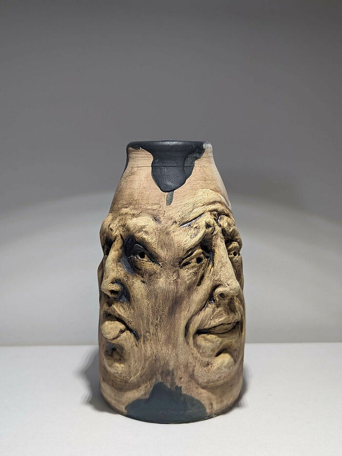 „Moja praktyka ceramiczna służy jako naczynie do opowiadania historii, konfrontując się z takimi tematami jak lęk, depresja i upływ czasu — często z nutą czarnego humoru. Każdy dzbanek z twarzą jest celowo ekspresyjny, zaprojektowany tak, aby rezonować emocjonalnie i wywołać chwilę refleksji, empatii, a nawet cichego połączenia z widzem.” – dodaje Adam.
