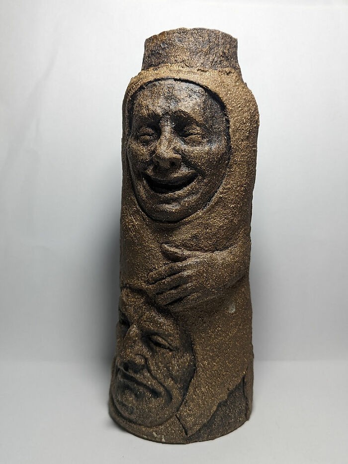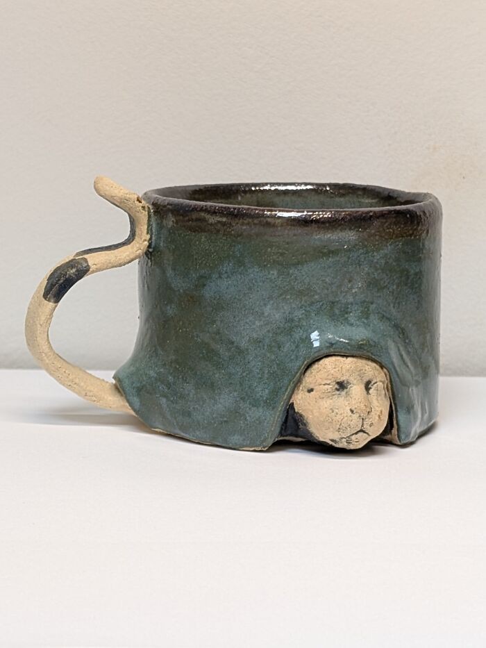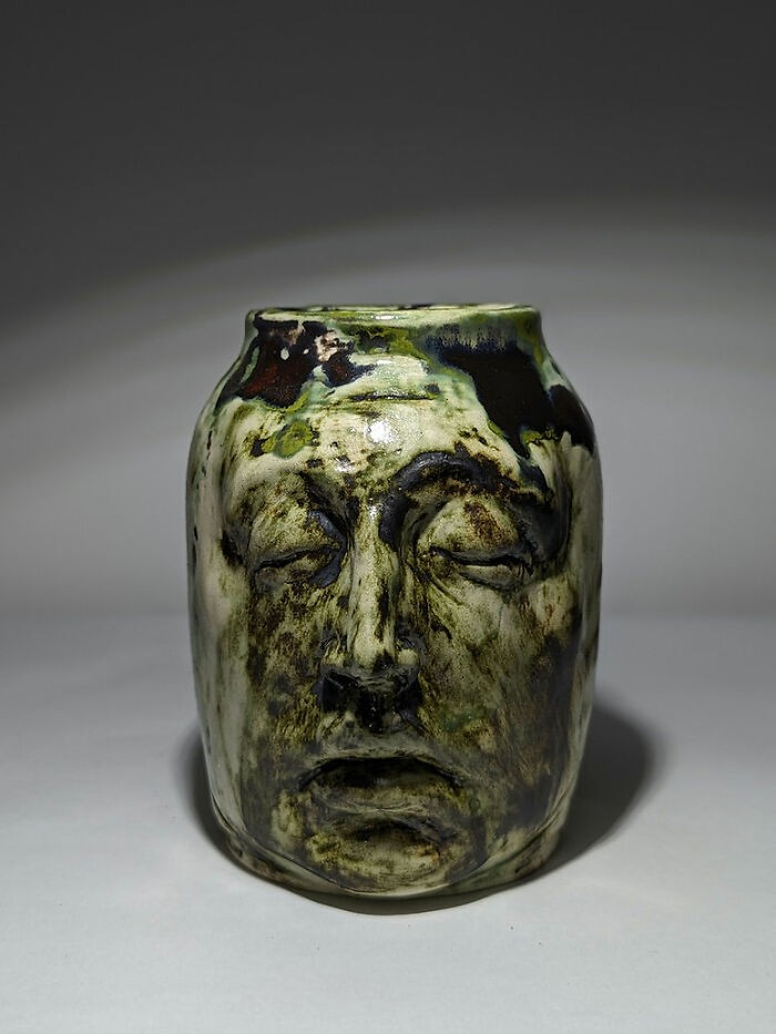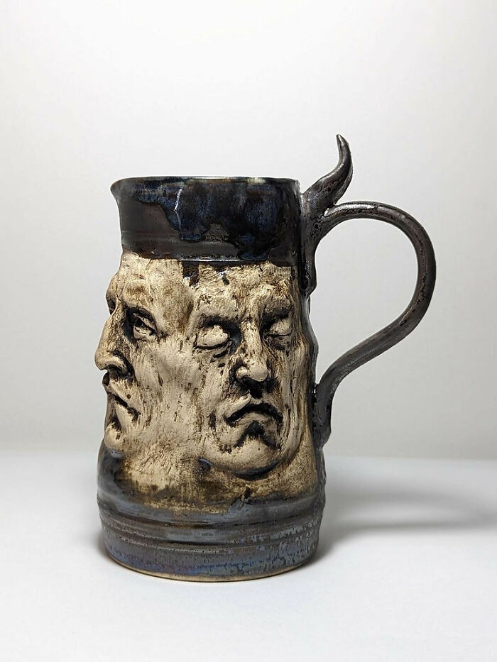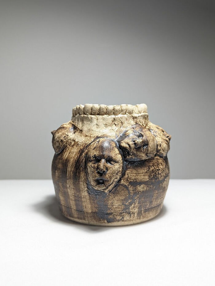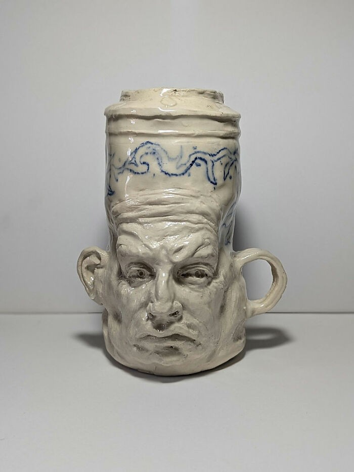 „Moja praktyka ceramiczna służy jako naczynie do opowiadania historii, konfrontując się z takimi tematami jak lęk, depresja i upływ czasu — często z nutą czarnego humoru. Każdy dzbanek z twarzą jest celowo ekspresyjny, zaprojektowany tak, aby rezonować emocjonalnie i wywołać chwilę refleksji, empatii, a nawet cichego połączenia z widzem.” – dodaje Adam.