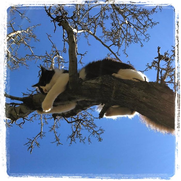 Uznawane za mistrzów drzemki, koty zasypiają praktycznie wszędzie. Tym razem zebrałem fotografie przedstawiające mruczki zasypiające… na drzewach. Nie dlatego, że polują na ptaki, patrzą w gwiazdy czy kontemplują otoczenie, lecz zwyczajnie dlatego, że to ich ulubione miejsce do spania. Zwijają się w najdziwniejsze pozycje i drzemią na winoroślach, sosnach, czereśniach, olchach i wielu innych gatunkach drzew. Można by ten materiał nazwać botaniczno-kocim zbiorem, ale trudno nie uśmiechnąć się widząc te sytuacje.