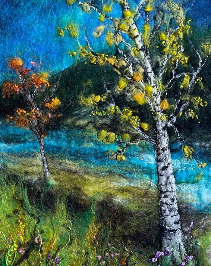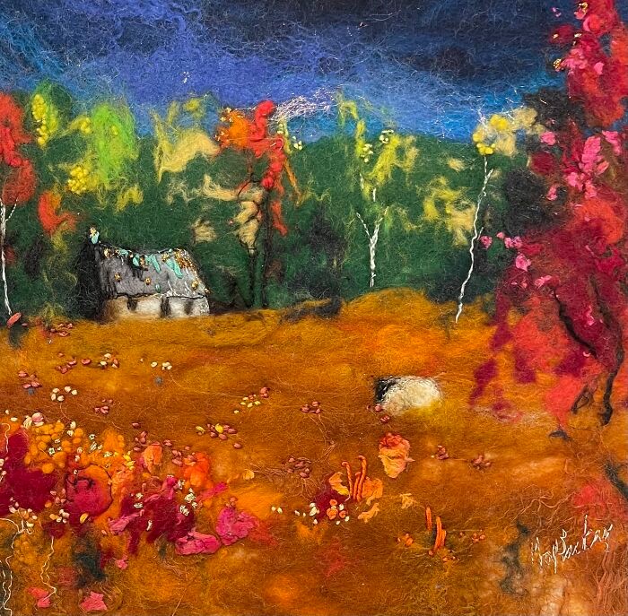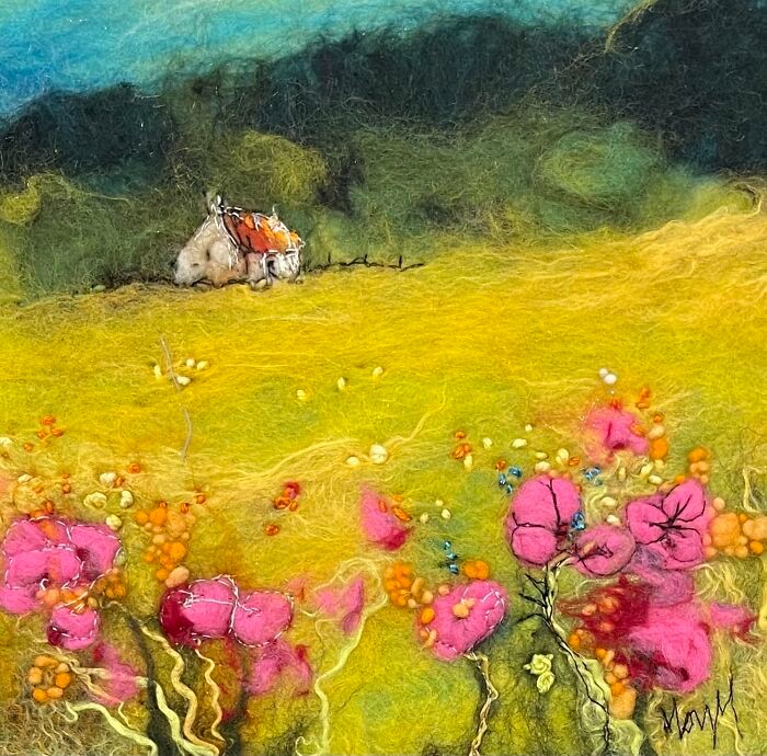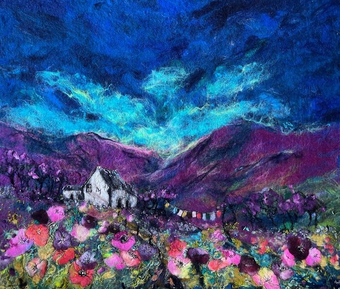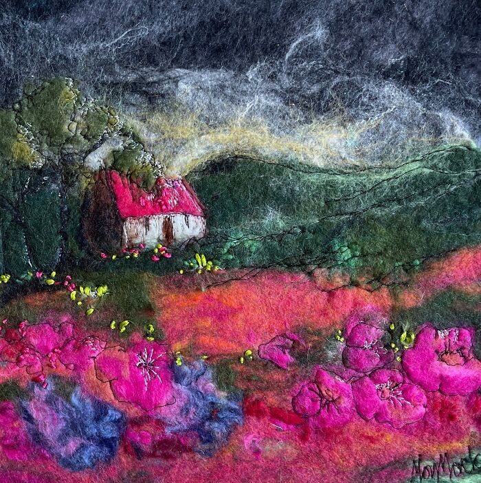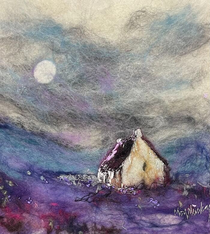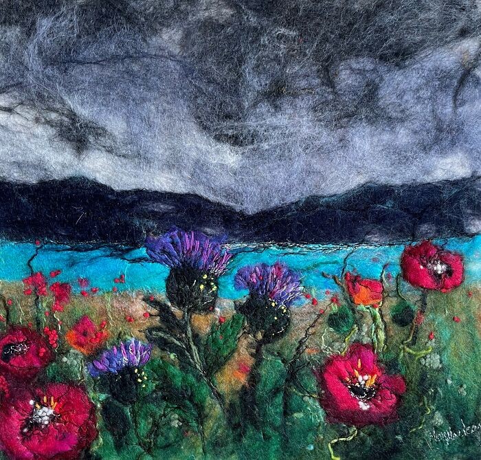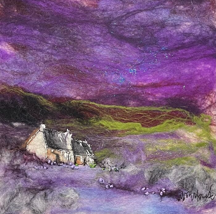 Moy Mackay jest artystką z Edynburga, obecnie mieszkającą w Scottish Borders, która tworzy piękne krajobrazy, ale zamiast farby używa włókien. Aby przekształcić włókna w dzieło sztuki, filcuje je, aby uzyskać wyjątkowy efekt, jakiego nigdy wcześniej nie widziano.