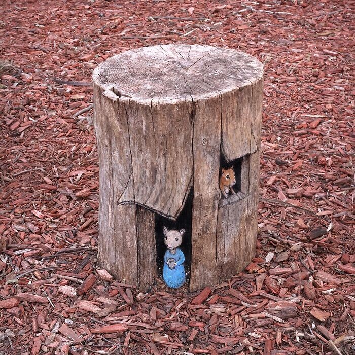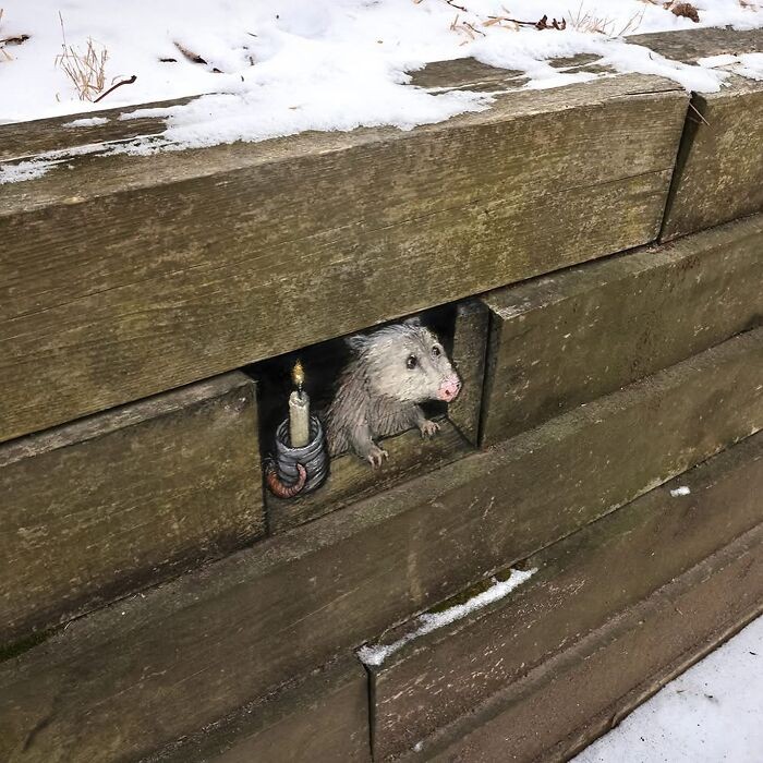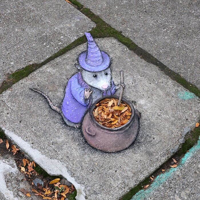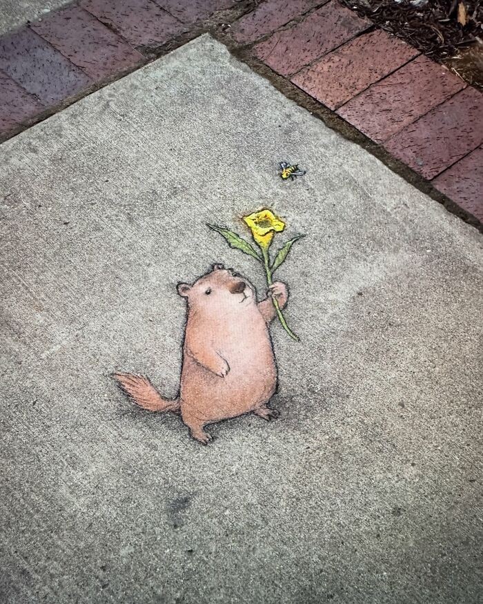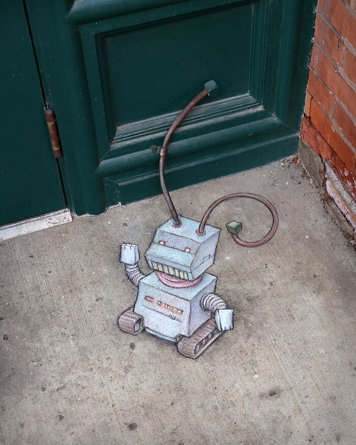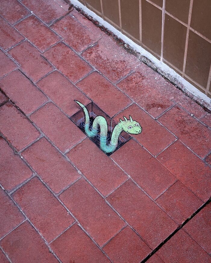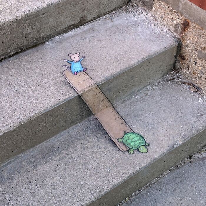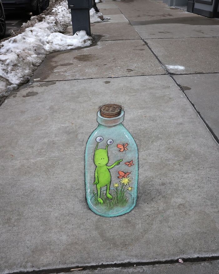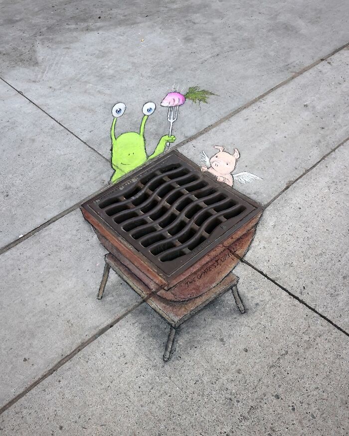 David Zinn to utalentowany artysta z Ann Arbor w stanie Michigan, znany z tworzenia zabawnych i figlarnych rysunków kredą na ulicach. W jego pracach często pojawiają się osobliwe małe stworzenia, które zdają się ożywać dzięki wykorzystaniu pęknięć i śladów na chodnikach jako części swoich ciał. Te rysunki są tymczasowe, wykonane kredą i węglem drzewnym i znikają wraz z kolejnym deszczem — dzięki czemu każdy z nich jest wyjątkową niespodzianką dla każdego, kto go zobaczy.