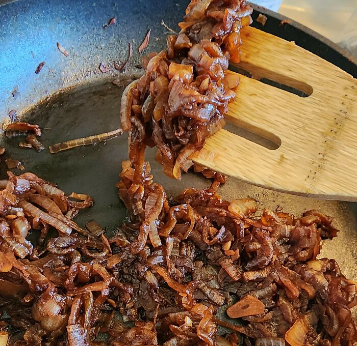 Przechowuję karmelizowaną cebulę w zamrażarce i dodaję ją do wszystkiego