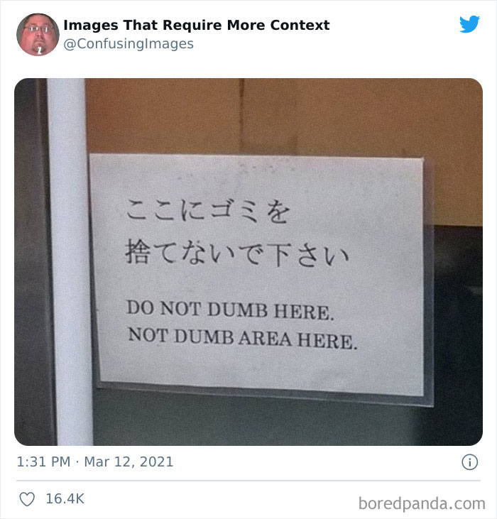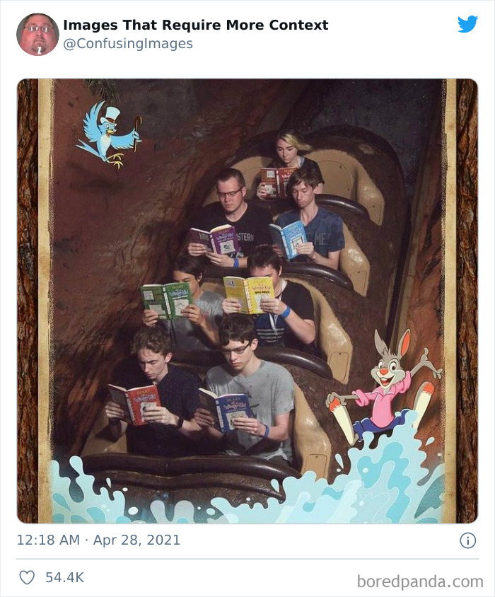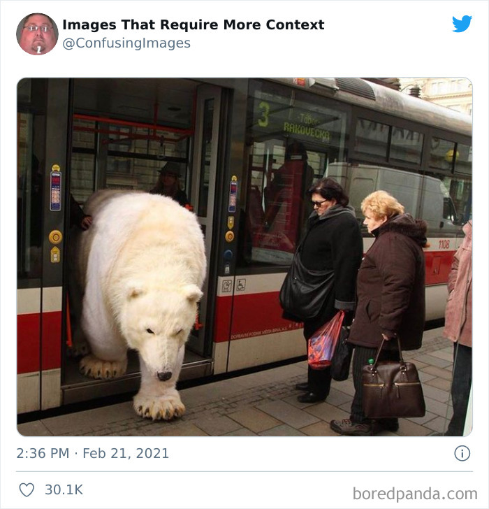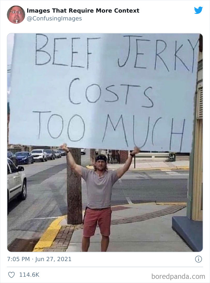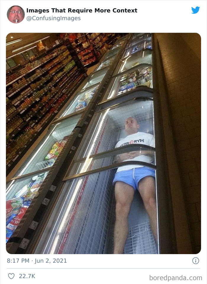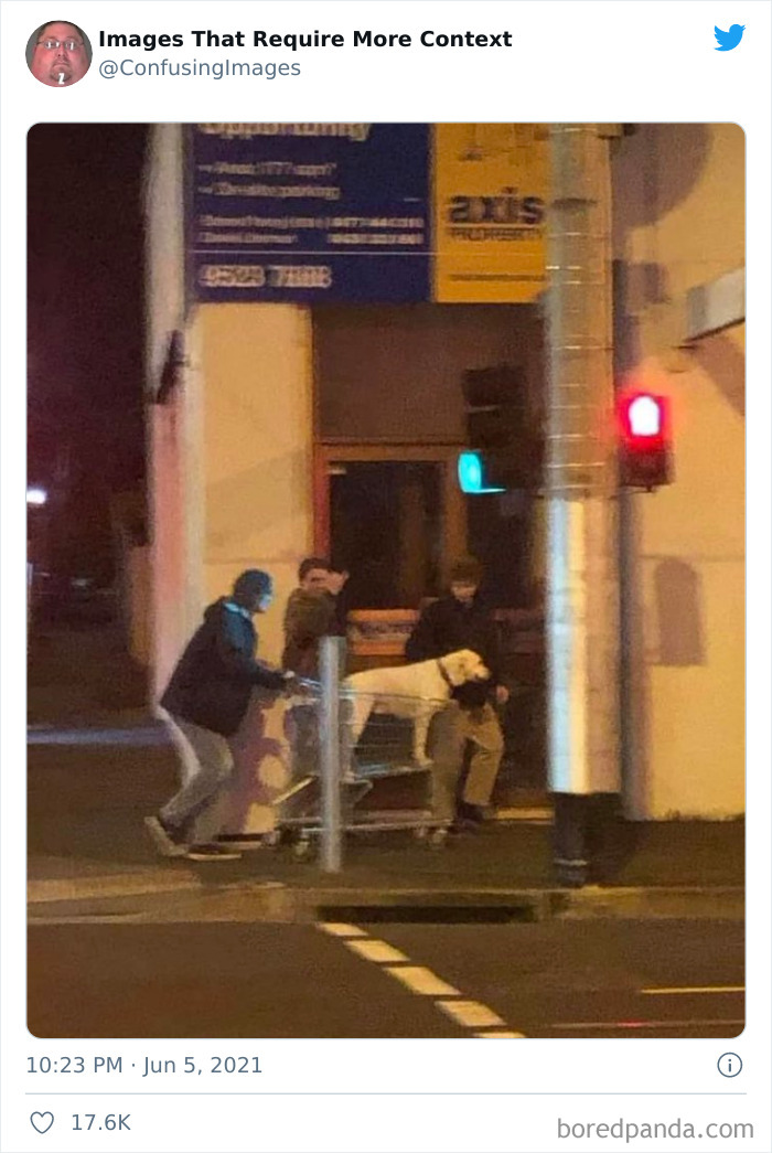 Na szczęście zdjęcia pozbawione kontekstu świetnie nadają się na memy i żarty. Konto Twitterowe „Images That Require More Context” zbiera dziwne, mylące i zabawne fotografie, które po prostu błagają o krótkie wyjaśnienie. Trochę informacji i wszystko staje się jaśniejsze — choć czasem tajemnica pozostaje częścią uroku.