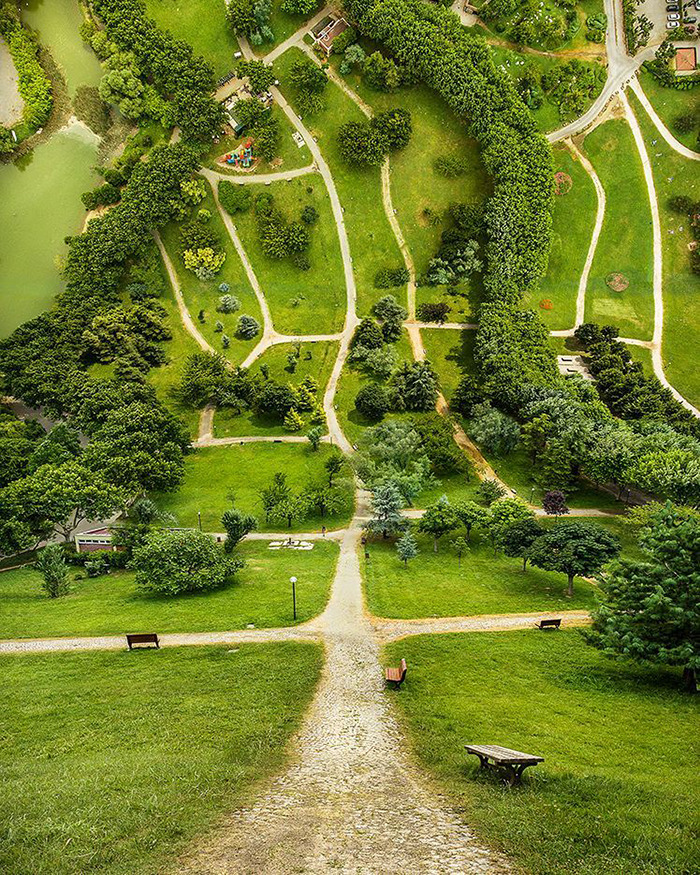 Aydın Büyüktaş, autor projektu „Flatland”, fotografuje krajobrazy i panoramy miast przy pomocy drona, a następnie łączy dwa ujęcia w postprodukcji, tworząc niezwykłe obrazy. Jego prace, przypominające sceny z filmu „Incepcja”, od lat fascynują widzów na całym świecie — z przyjemnością wracamy do tego projektu po 7 latach.