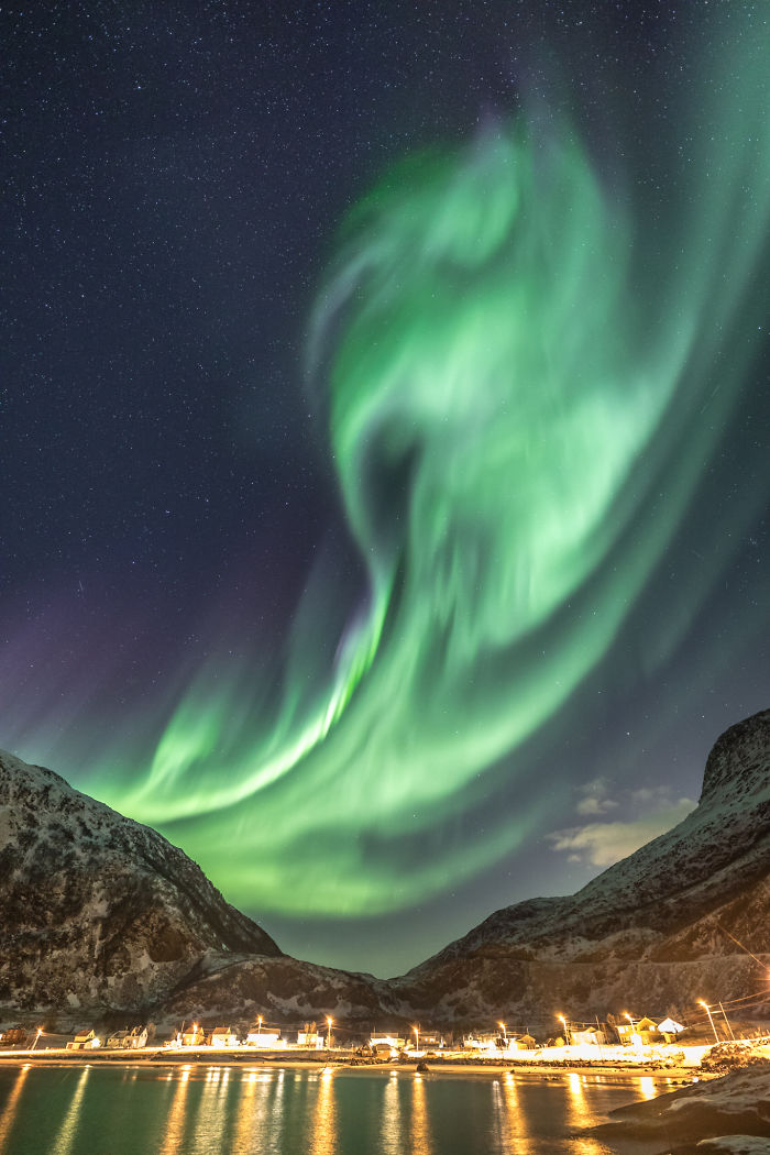 Wyobraź sobie życie w takiej wiosce, gdy co jakiś czas nad głową rozlewa się zorza.