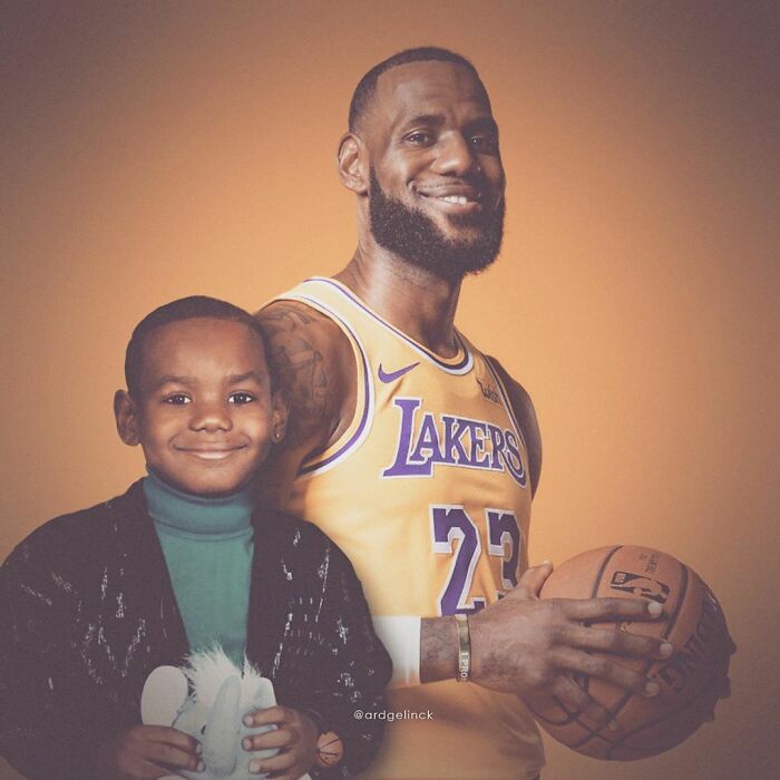 Ard Gelinck wielokrotnie zabierał nas w sentymentalne spacery za pomocą cyfrowej „maszyny czasu”. Słynie z zestawiania ikonicznych postaci z ich młodszymi wersjami, a ta kolekcja jest wyjątkowo urocza — artysta łączy współczesne zdjęcia z tymi z dawnych lat, tak jakby dorosłe ja spotykało swoje dziecięce alter ego na wspólną zabawę.