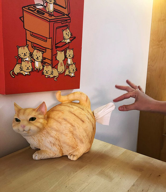 Prezentuję… dziwaczny koci pojemnik na bibeloty! Nie zabrałem go do domu.