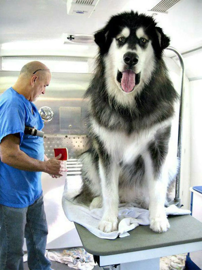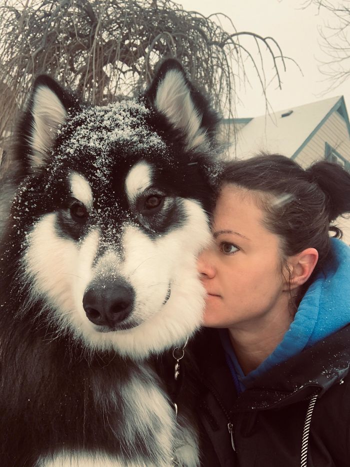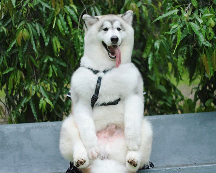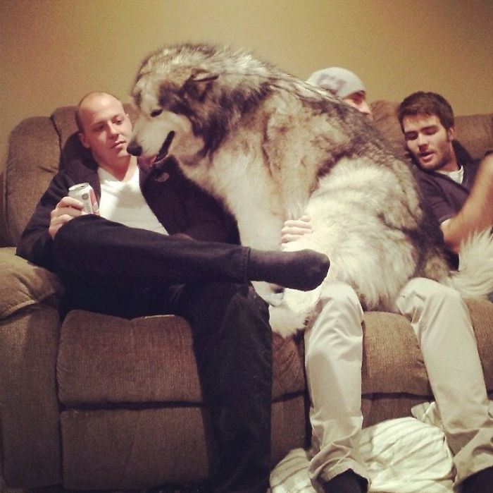 Mój znajomy myśli, że jego malamut to pies na kolana