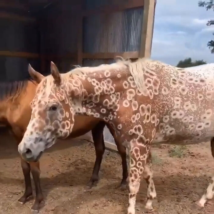 Appaloosa to amerykańska rasa koni słynąca z plamistego umaszczenia. Wzory powstają przez nakładanie się różnych genetycznych warstw na podstawowy kolor — ten osobnik ma rzadkie, przypominające pawie pióra umaszczenie.