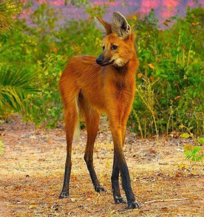Wilk pampasowy (maned wolf) to jedno z największych psowatych Ameryki Południowej. Jest jedynym gatunkiem w swoim rodzaju — choć nazywany wilkiem, nie jest typowym wilkiem ani lisem; długie nogi pomagają mu poruszać się po wysokich trawach.