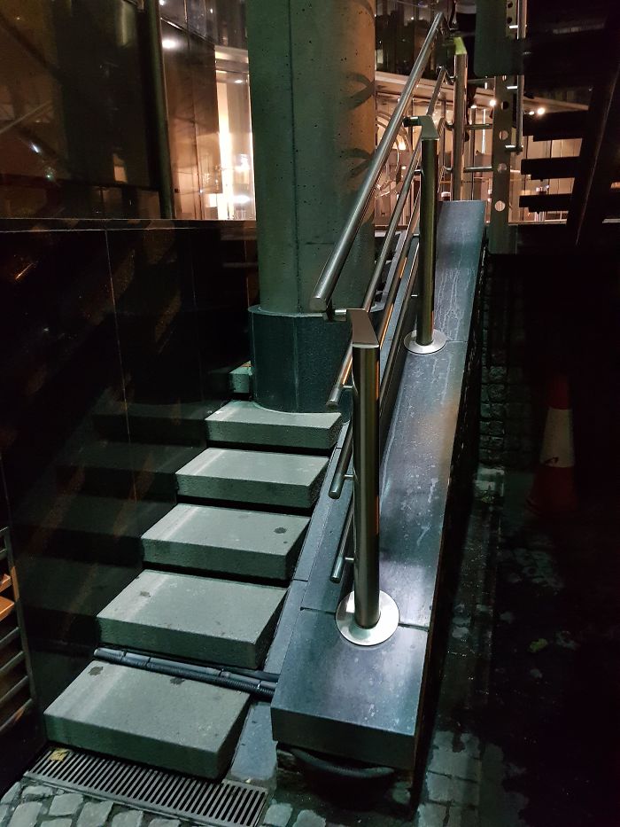 To nie są schody. To dekoracyjny wodospad — kolega wpadł i się poślizgnął