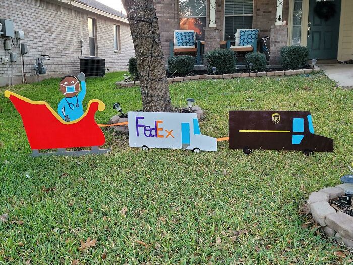 Sąsiadowska dekoracja nawiązująca do pandemii