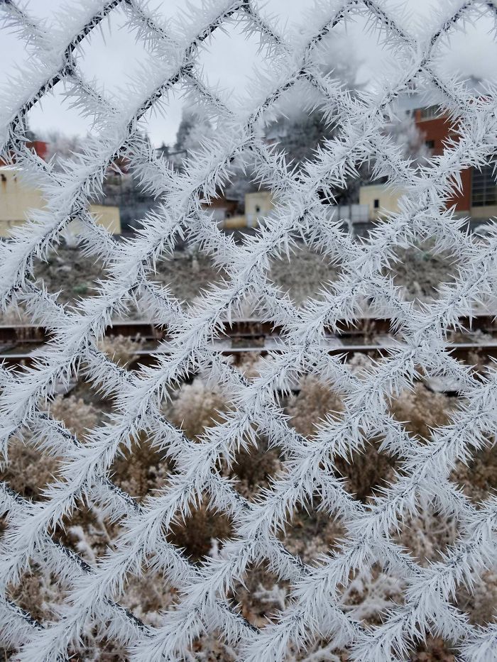 Szron na płocie dziś rano