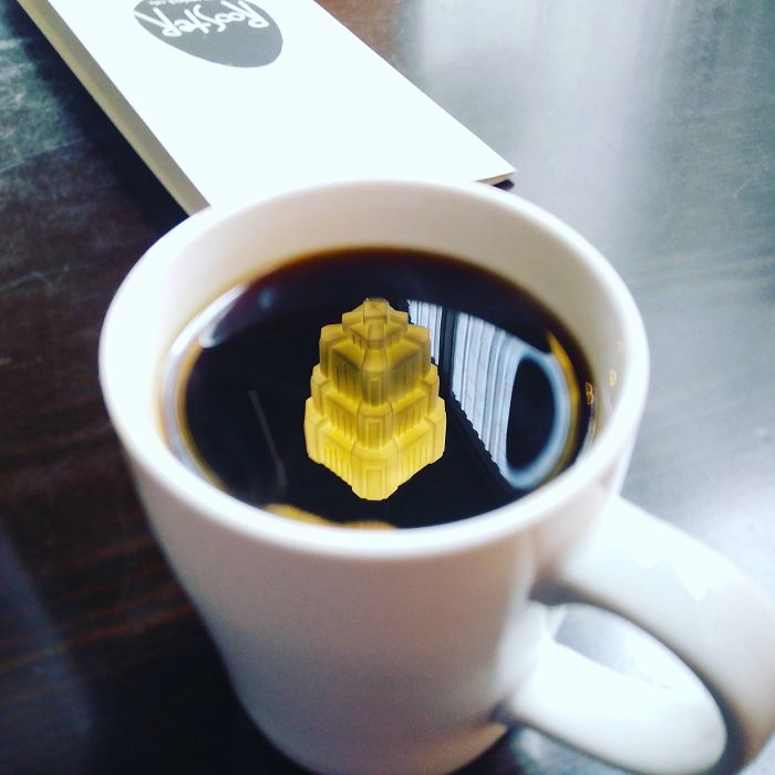 Odbicie światła w mojej kawie wygląda jak świecący zamek