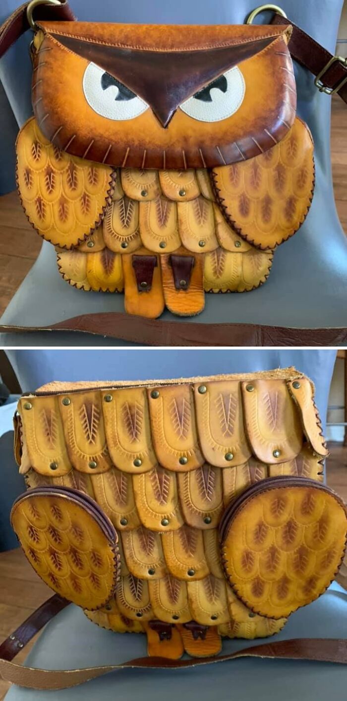 Skórzana, ręcznie wykonana torebka‑sowa z pchlego targu — 1$ — jestem od niej uzależniona