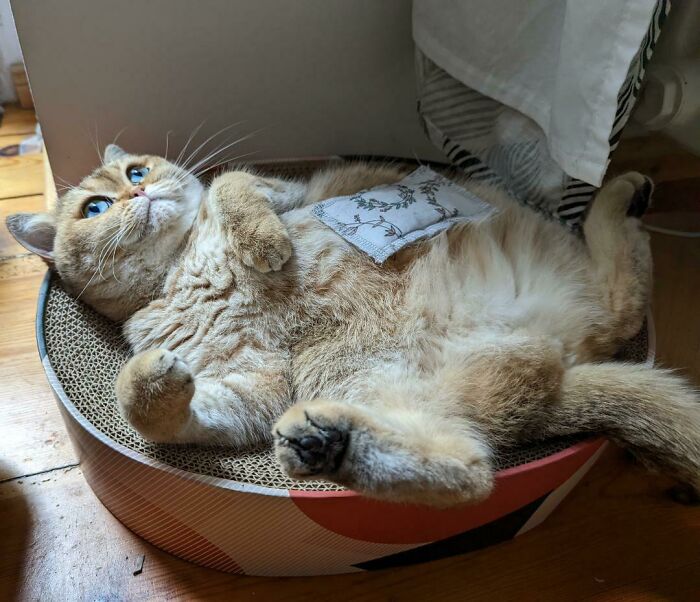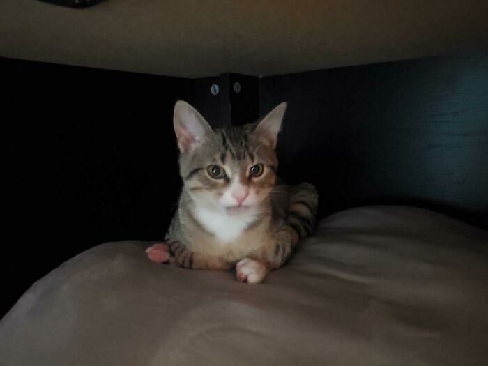 Zazwyczaj kot śpi na moim łóżku, ale nocuję u przyjaciela. Siostra właśnie wysłała mi to zdjęcie…