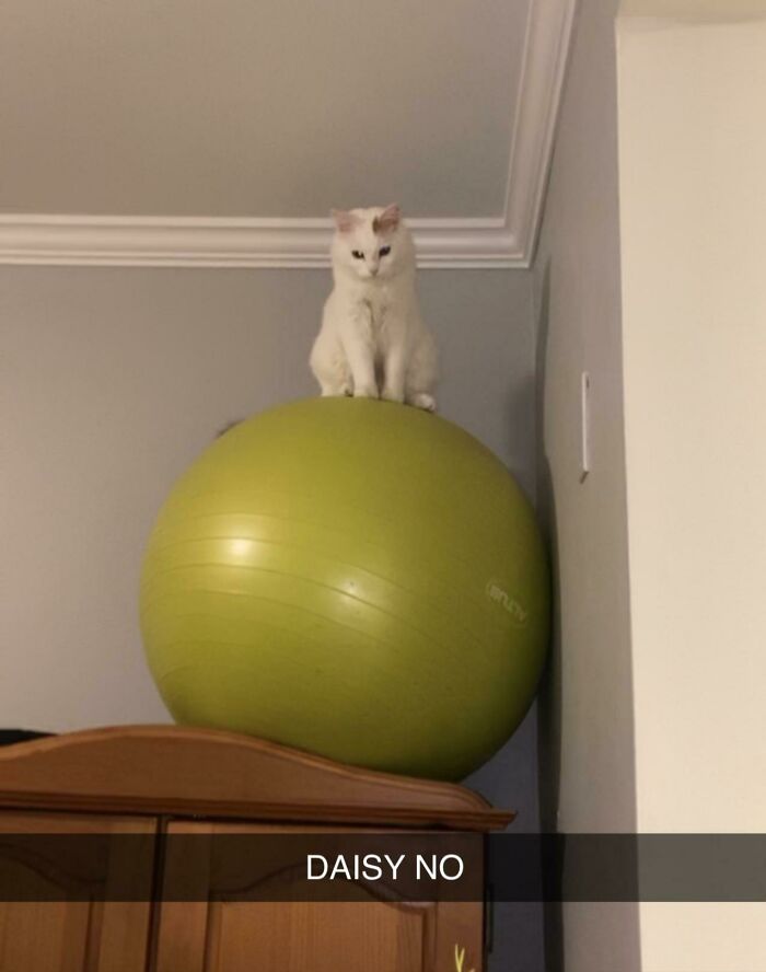 Stary numer z piłką do jogi: piłka na 2-metrowej szafie