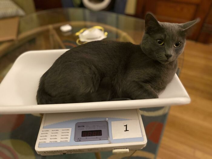 Po 20 minutach próbowania zważenia go na domowej wadze poddałem się. Wróciłem i zastałem go w takiej pozycji