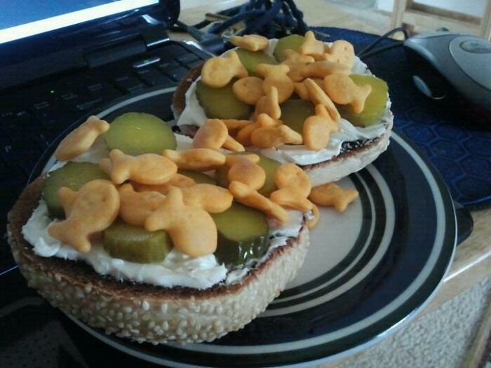Bajgel z masłem orzechowym i ogórkami konserwowymi — masło orzechowe pasuje do wszystkiego