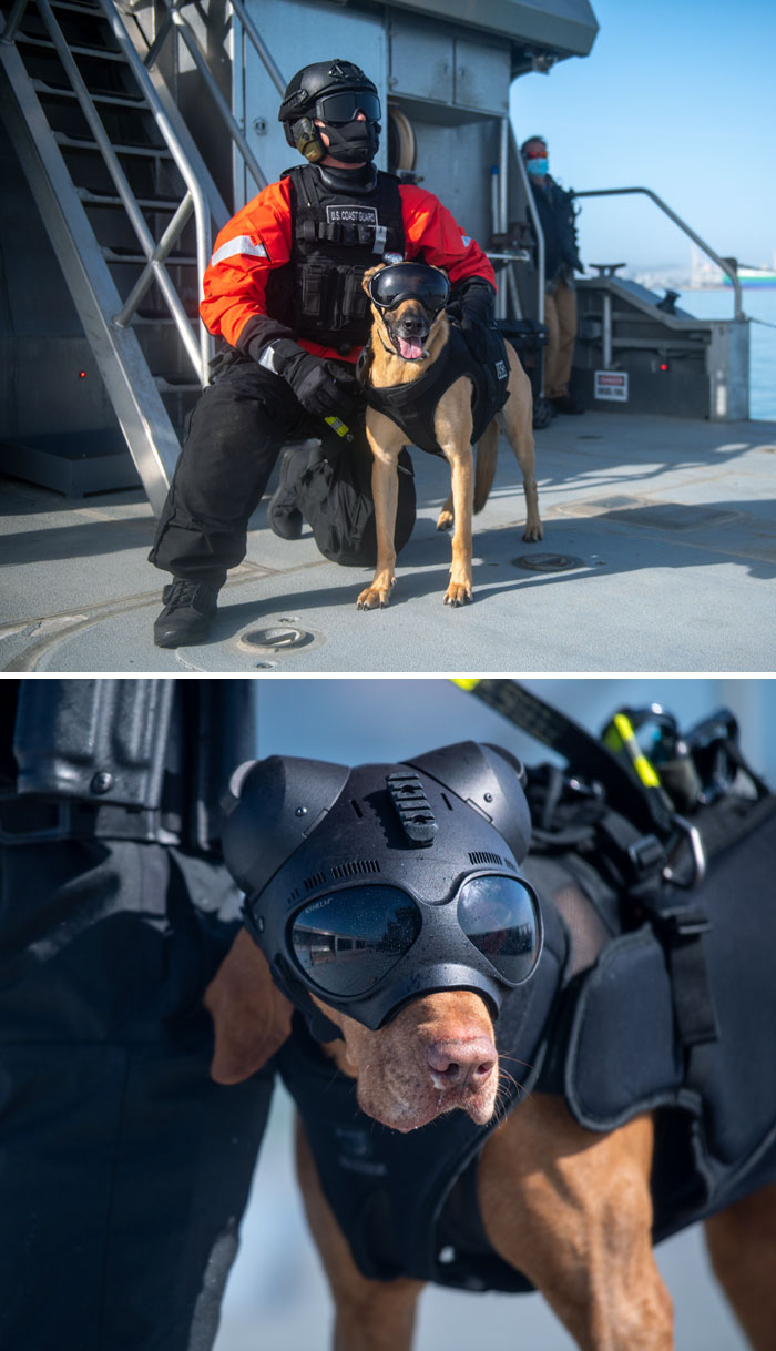 Służby pokazują, że także psy ratownicze mogą mieć swoje ochronne akcesoria — stylowe i bezpieczne wyposażenie.