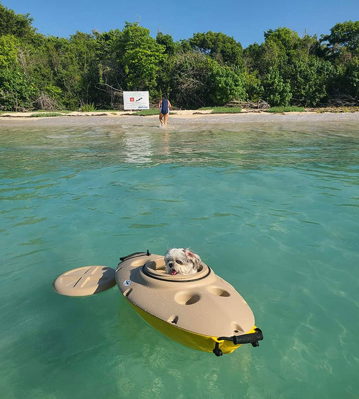 Auntka zaopatrzyła się w kajak z myślą o wspólnych przygodach z psem — bezpieczne i bezstresowe pływanie dzięki odpowiedniemu miejscu na czworonoga.