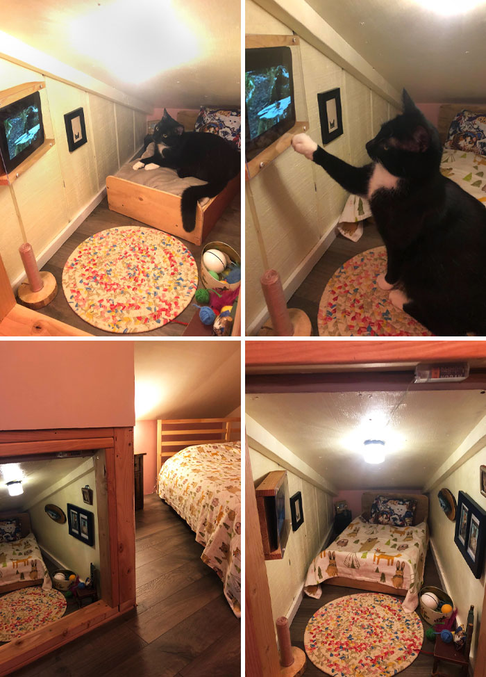 27. Sypialnia dla kota z włączonym „Bird TV”