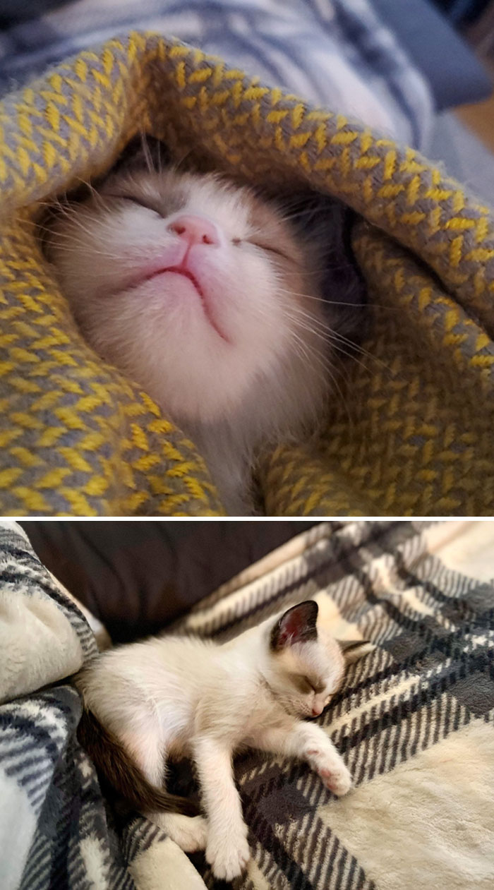 Właśnie uratowaliśmy tego samotnego kota. Gdy wróciliśmy, od razu zasnął