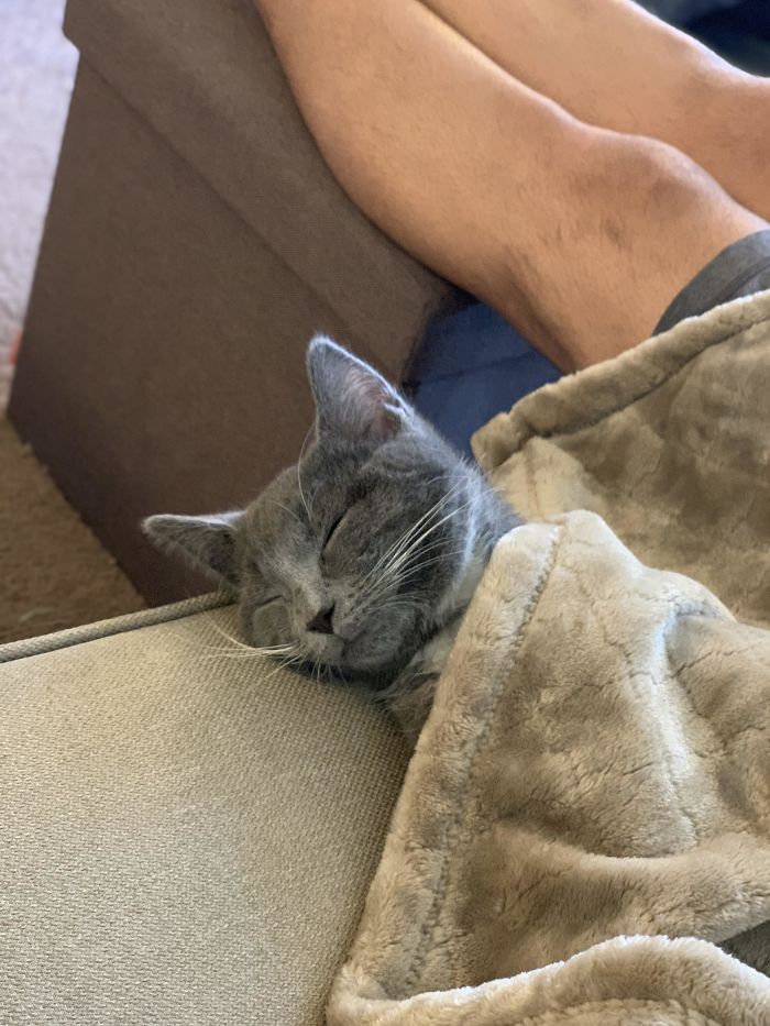 Nagle zasnęła tak, gdy się z nią bawiłem. To była bezdomna kotka — mój brat ją adoptował