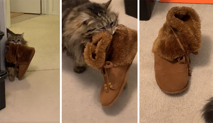 Kot przynosi kapcie
