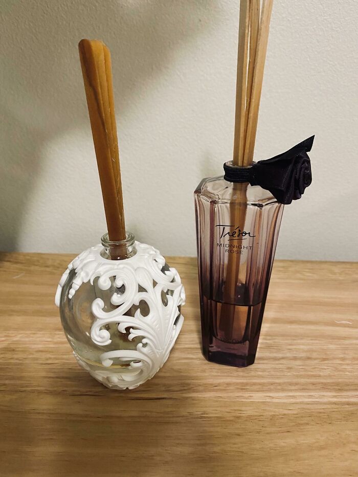Szklane flakoniki zamiast trafiać do kosza, mogą posłużyć jako dyfuzory lub mini-wazoniki — eleganckie i ekologiczne.