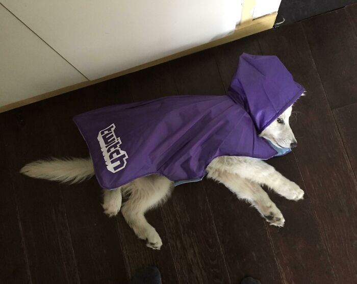 Z pozornie bezużytecznego parasola powstała wodoodporna peleryna dla pupila — kreatywny i ekonomiczny sposób na ochronę przed deszczem.