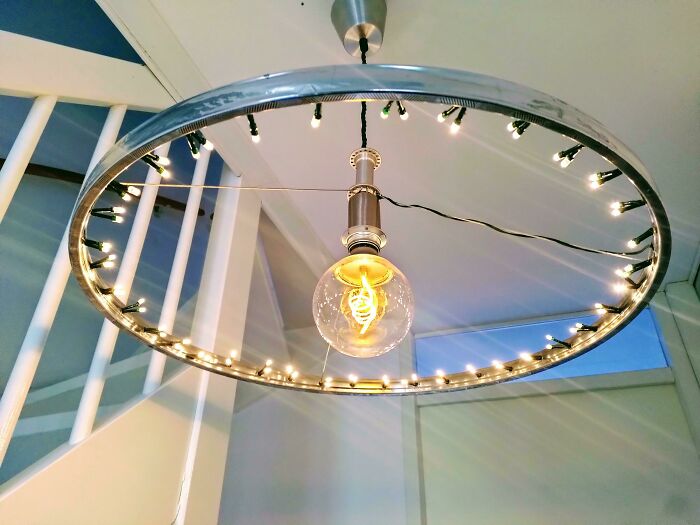 Coś zrobione ze starych części rowerowych i świateł choinkowych