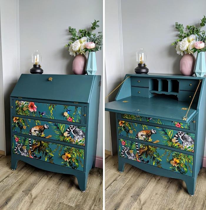 Stare biurko do pisania przerobione na przewijak do nowego pokoiku