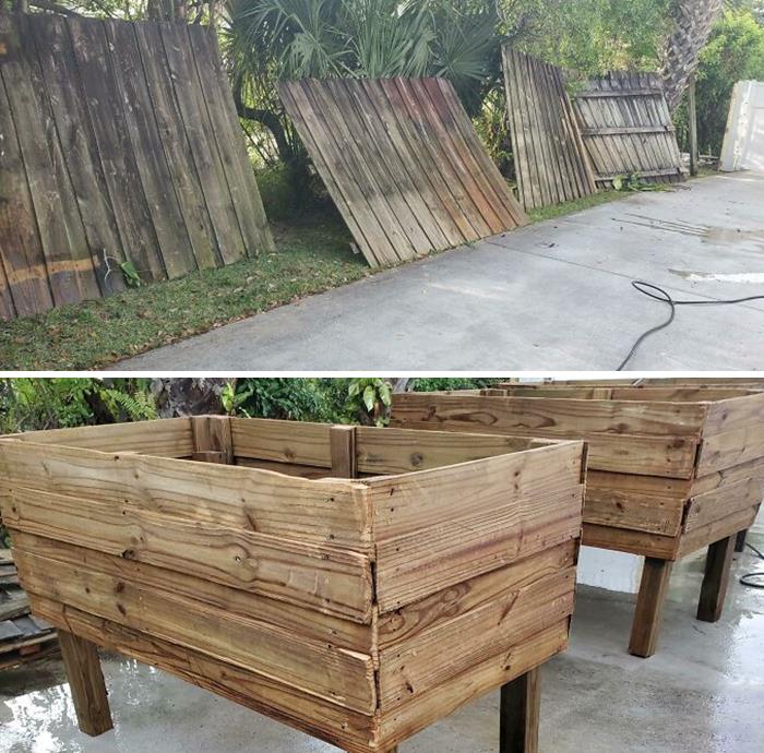 Przekonałem znajomego, żeby nie wyrzucał starego płotu — zbudowałem z niego skrzynki ogrodowe