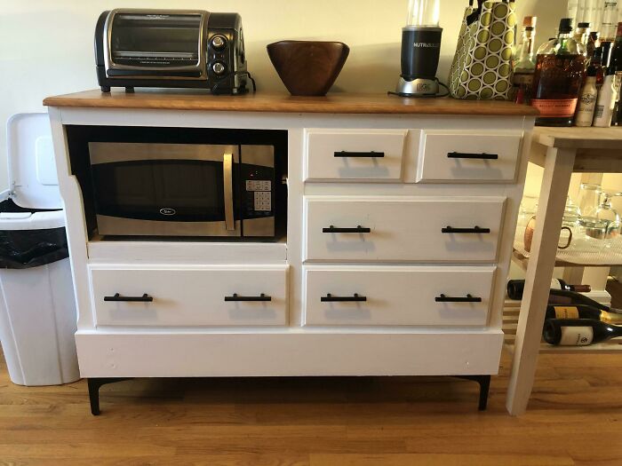 Stara komoda przerobiona na stojak pod mikrofalówkę