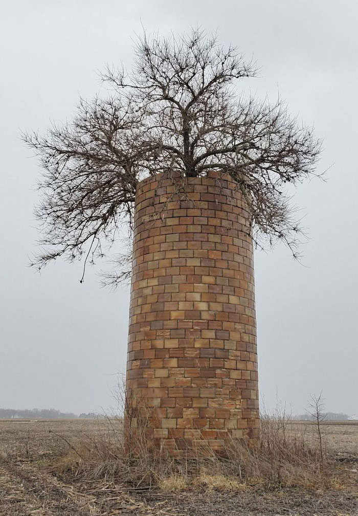 Drzewo, które wyrosło wewnątrz starego silosu i w końcu sięgnęło jego szczytu