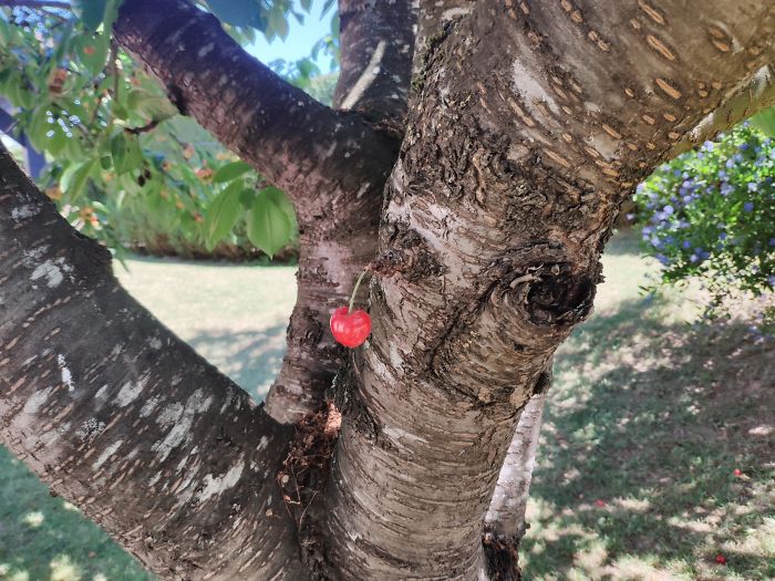 Wiśnia, która wyrosła samotnie na środku drzewa