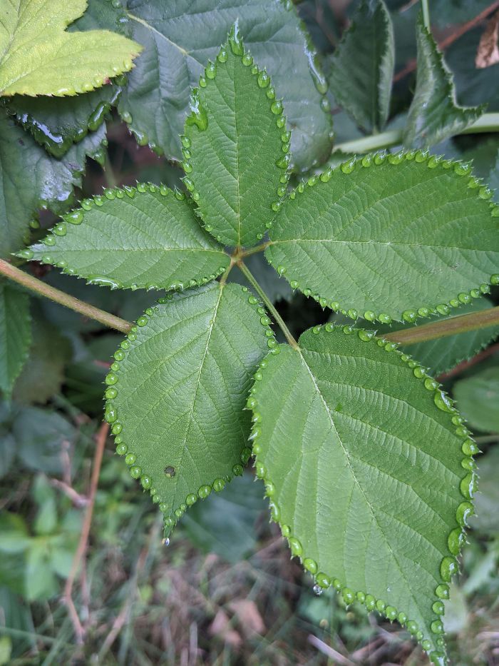 Skraplanie wody na krzewie jeżyny — poranny wzór