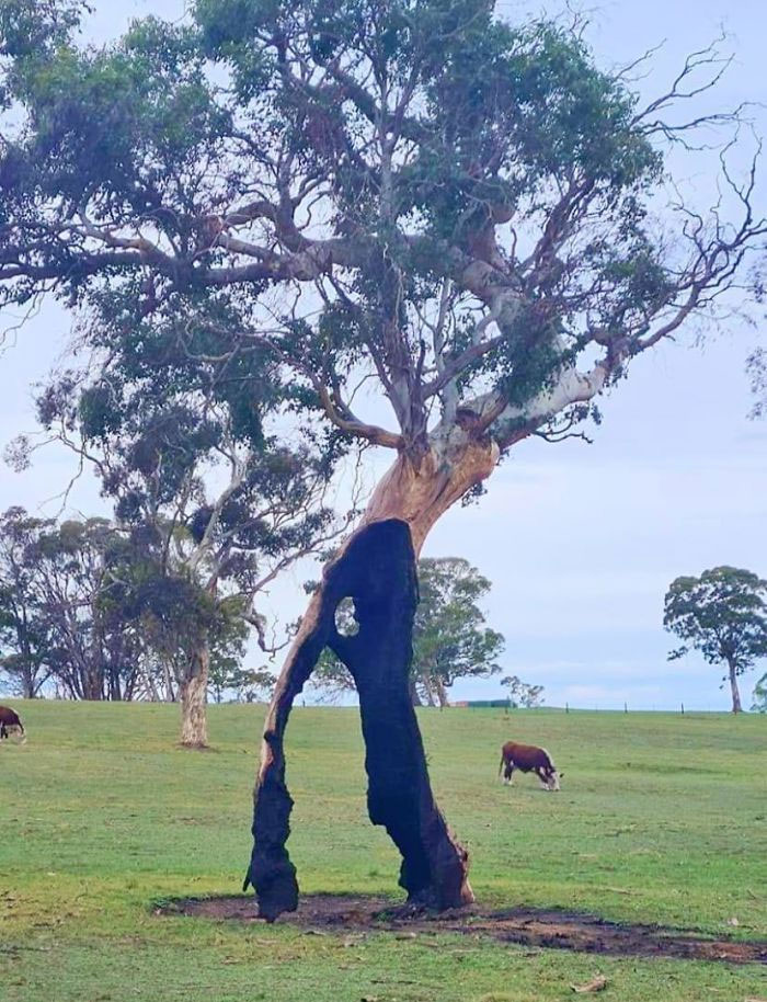 Drzewo spalone w pożarze, które ciągle żyje