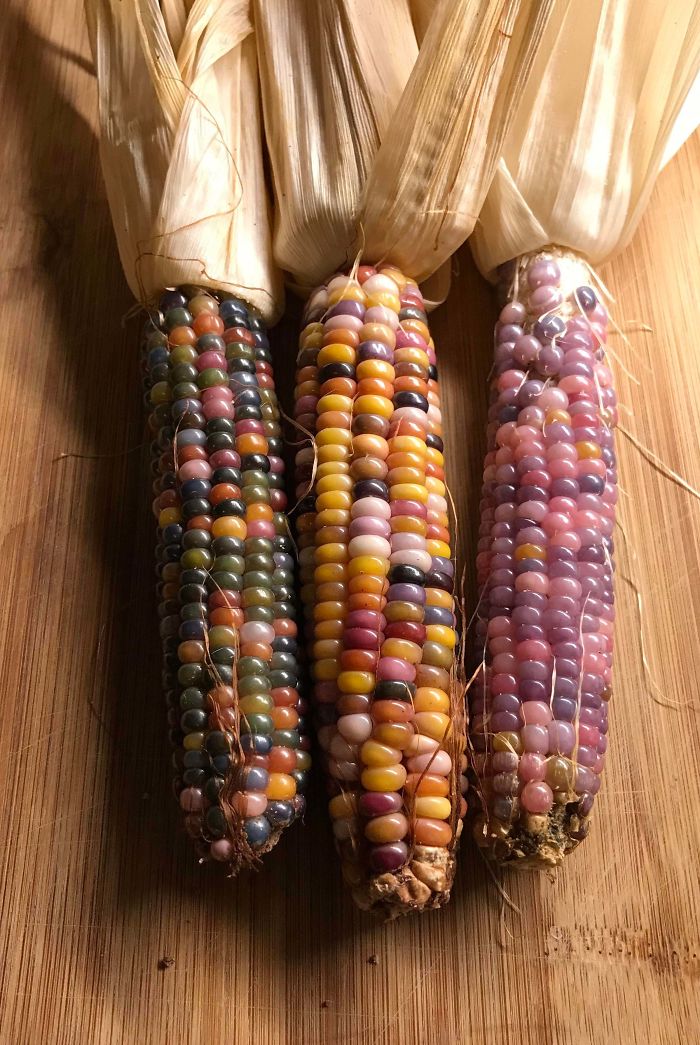 Trzy kolby z tej samej odmiany starych nasion kukurydzy