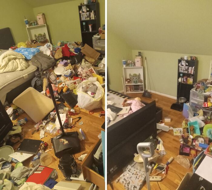 Wyrwałam się z dołka depresji! Naprawdę nie mogę uwierzyć, że pozwoliłam dojść do takiego stanu — posprzątanie zajęło mniej niż dzień. Teraz codziennie budzę się w innym, odświeżonym pokoju i to świetne uczucie.